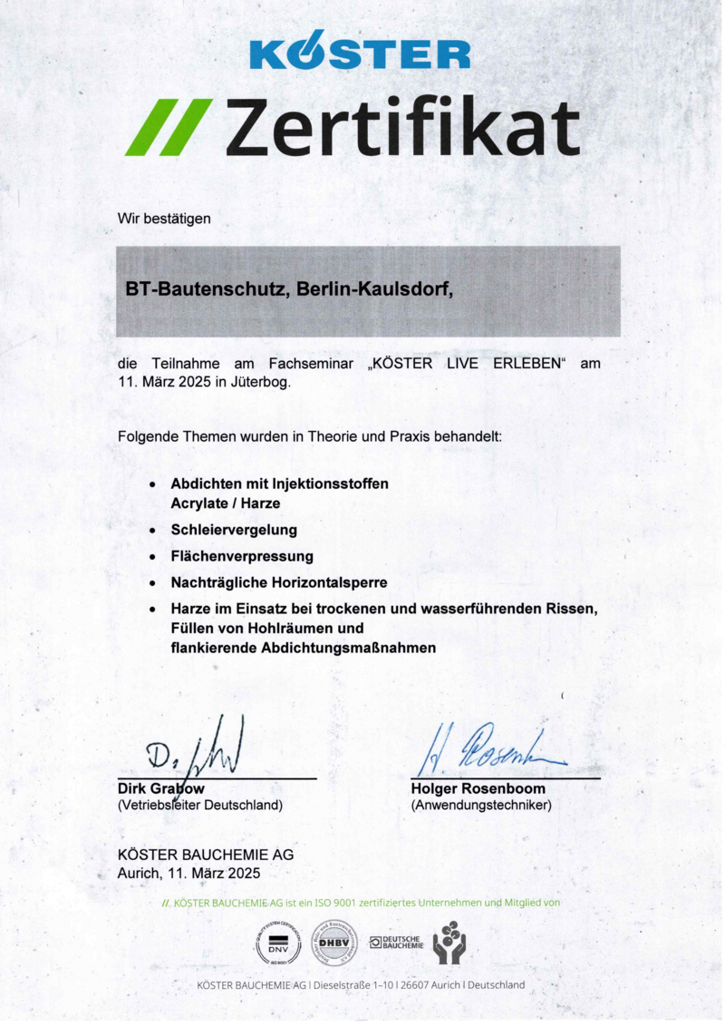 Bei BT Bautenschutz legen wir großen Wert auf kontinuierliche Weiterbildung und fachliche Qualifikation.